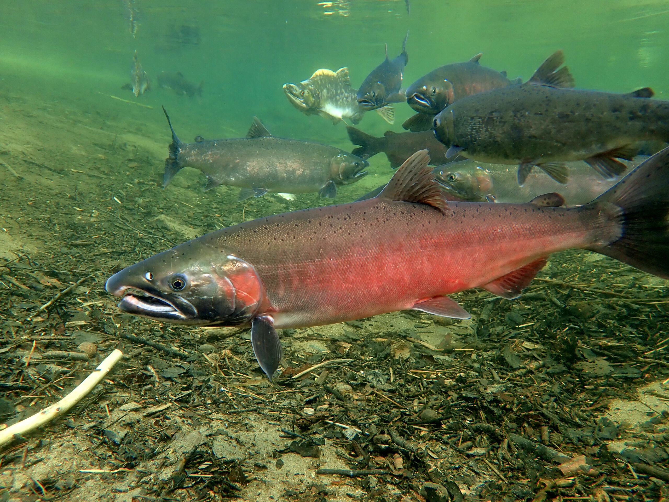 Salmon Sangha takes its name from the inspiration of Coho Salmon who home in the Creek running through our sanctuary. Salmon are born into the wholeness of Nature in these waters. In their second year of life, the young Fish travel downstream hundreds of miles to the Pacific Ocean. After several years, the Salmon return home to spawn in the stream gravel where they were born and where, if they are able to make the final journey home, will die. Salmon are models of enlightenment. They knowingly embrace impermanence with grace and beauty as they face innumerable challenges in life.